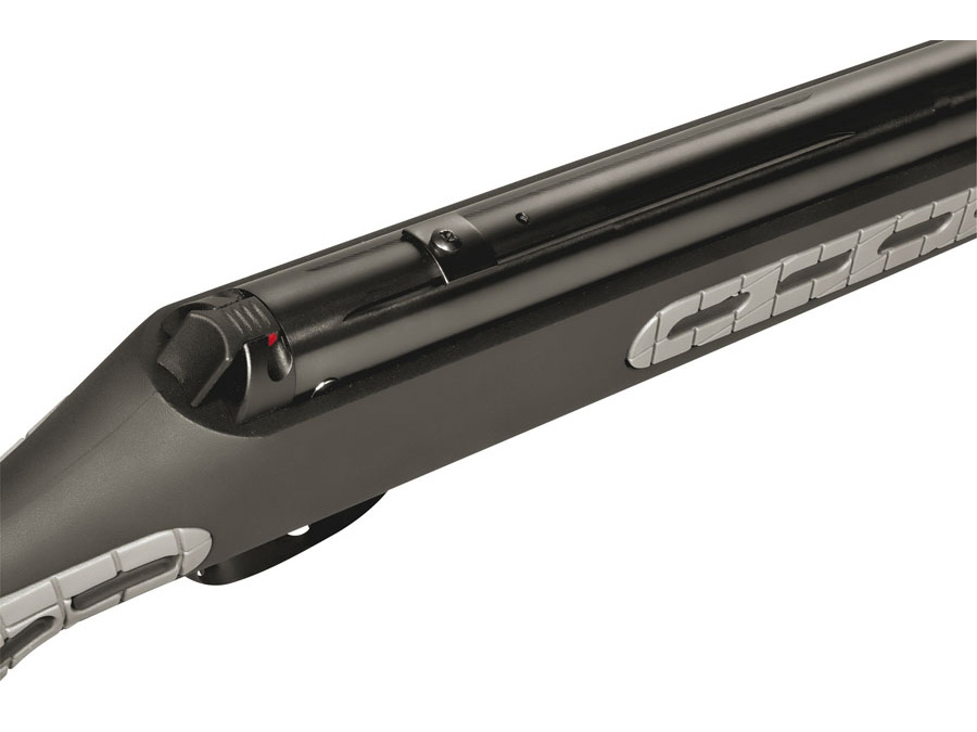 • Culata en polymero tipo Montecarlo ambidiestra y diseño ergonómico, con inserciones de goma a ambos lados de las cachas y guardamanos para