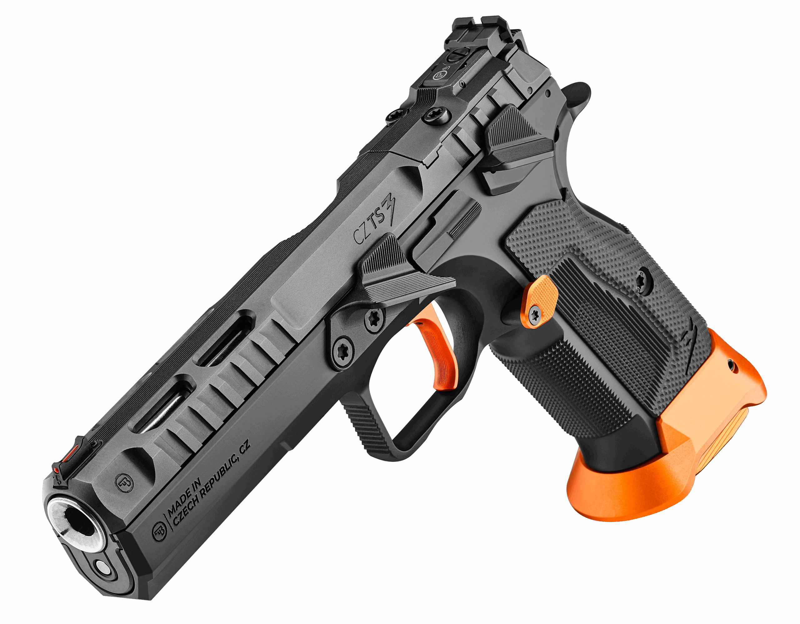 La CZ TS 3 ORANGE está disponible en calibre 9×19 mm y viene con garantía de por vida en el cañón. Ha sido desarrollada en estrecha colaboración con tiradores de élite del equipo de tiro CZ y es la elección del diez veces campeón mundial de IPSC, Eric Grauffel.